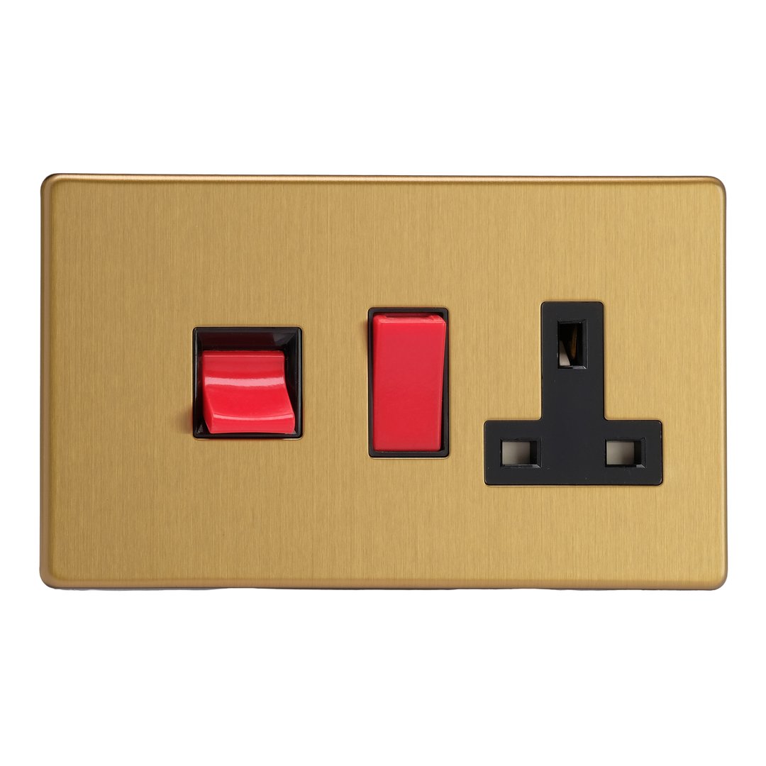45A Cooker Panel with 13A Double Pole Switched Socket Outlet (Red Rocker)