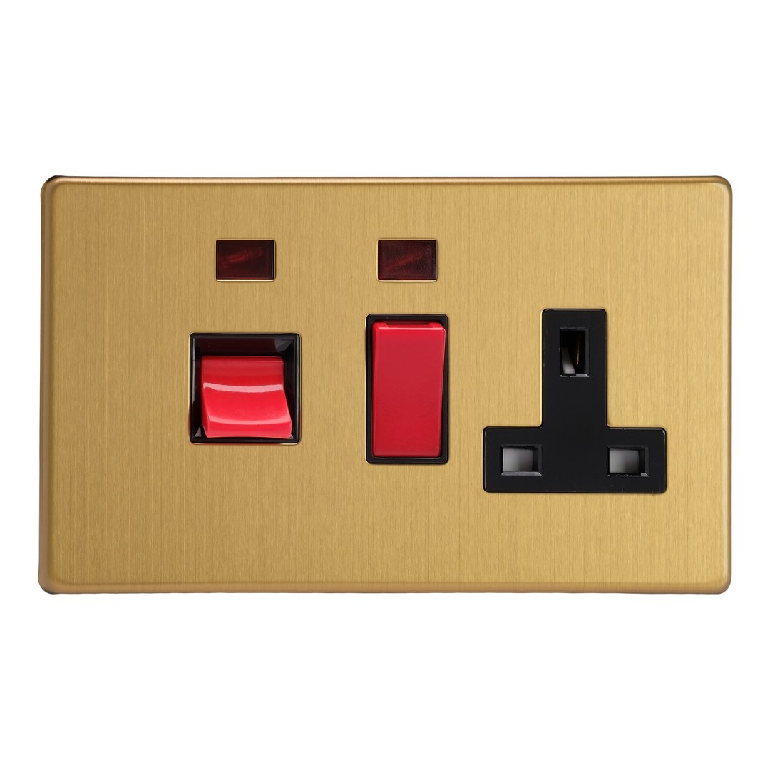 45A Cooker Panel with Neon with 13A Double Pole Switched Socket Outlet (Red Rocker)