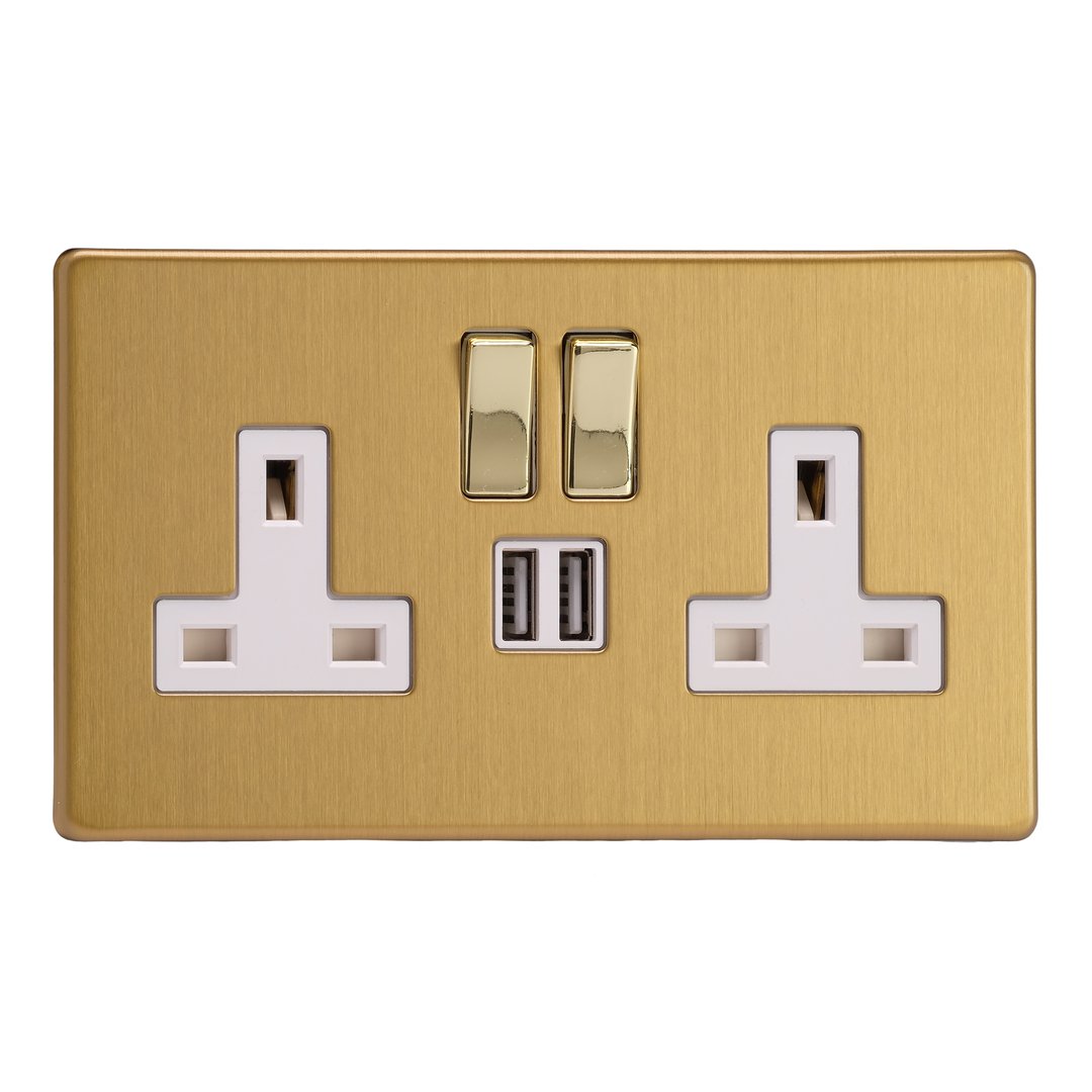 Double Socket with 2 x 12W Shared USB A Charging Ports