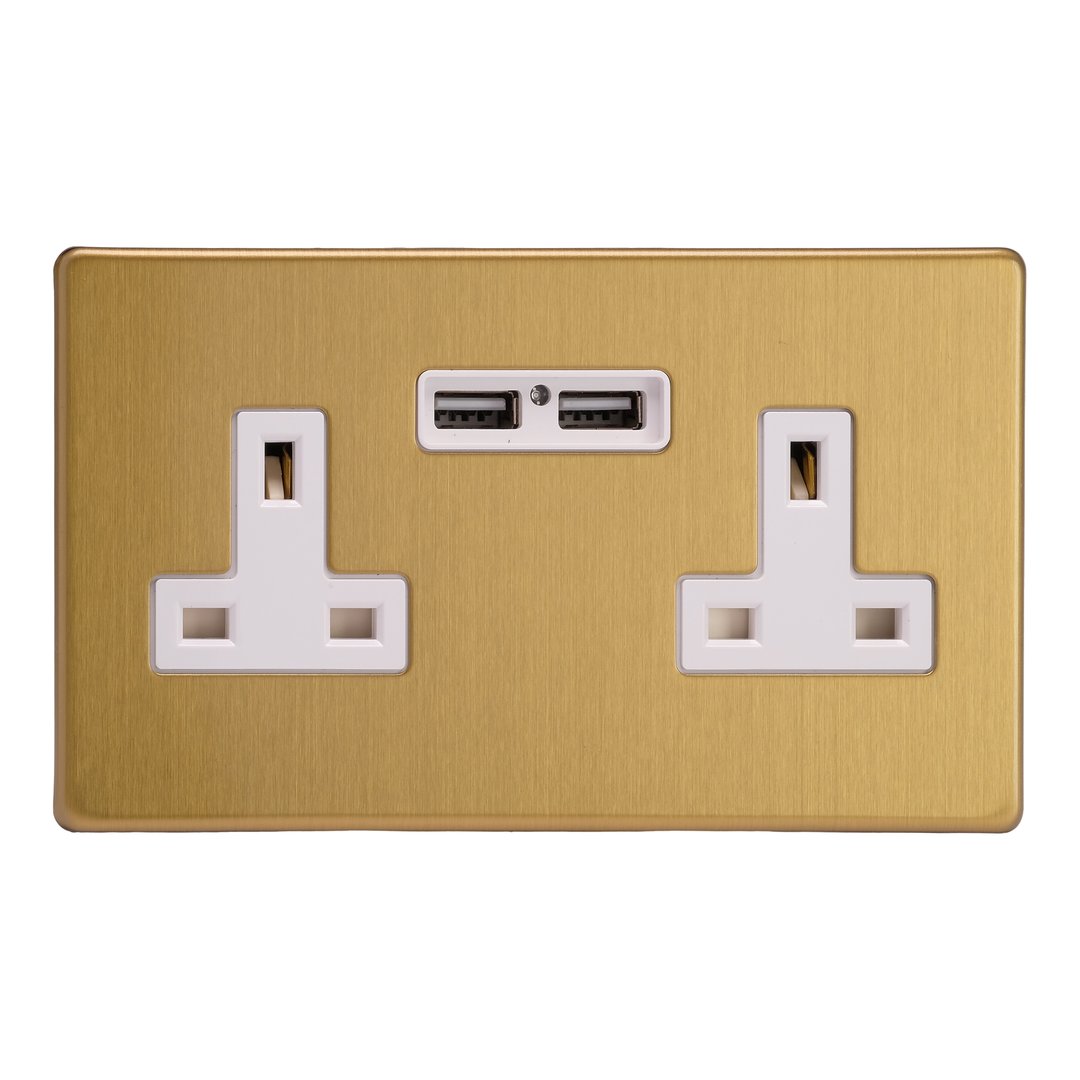 2-Gang 13A Unswitched Socket with 2 x 12W Shared USB A Charging Ports