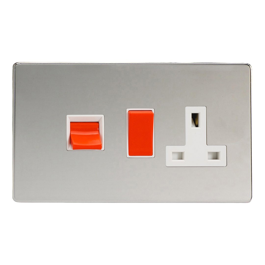 45A Cooker Panel with 13A Double Pole Switched Socket Outlet (Red Rocker)