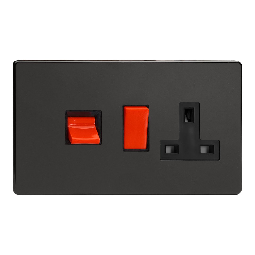 45A Cooker Panel with 13A Double Pole Switched Socket Outlet (Red Rocker)