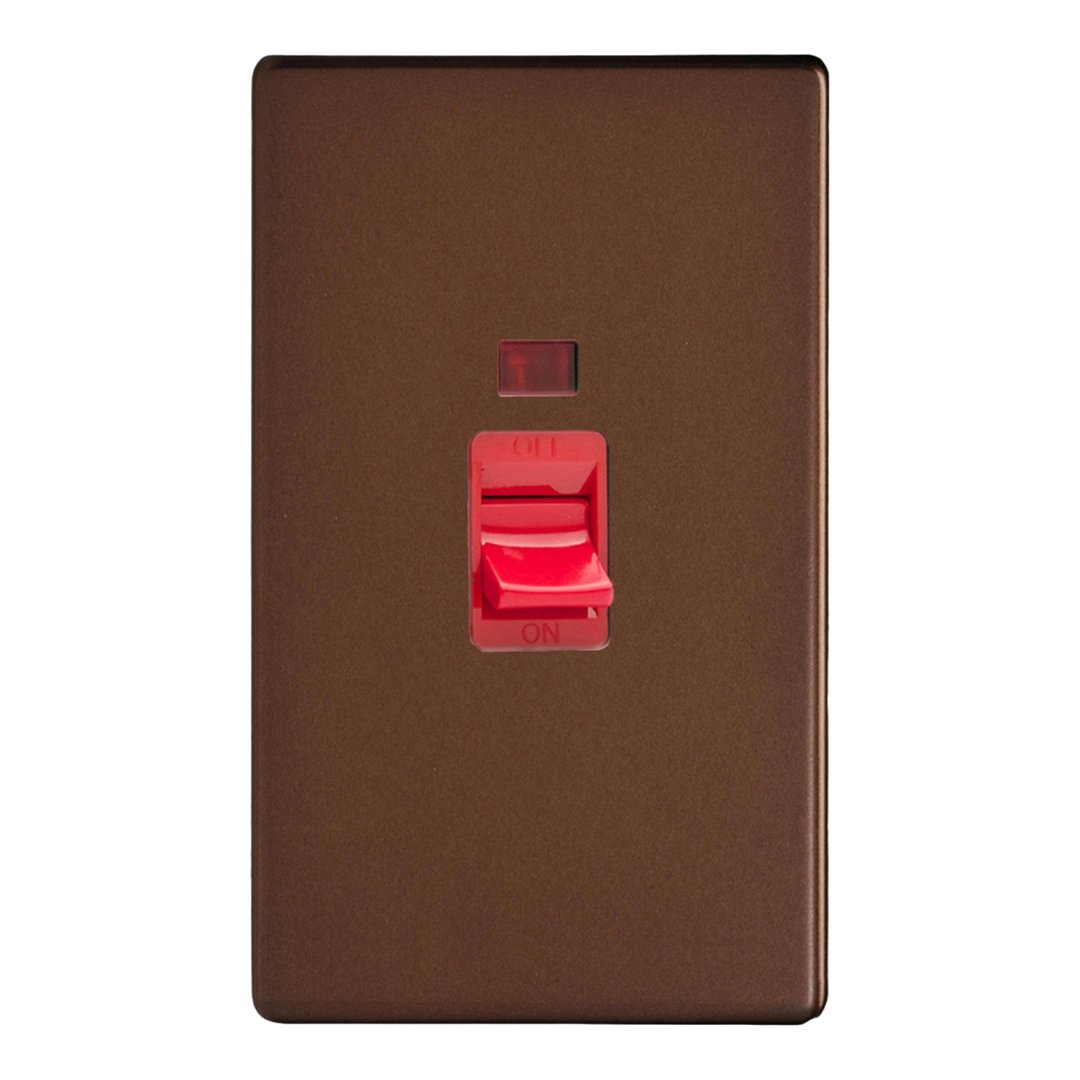 45A Cooker Switch with Neon (Vertical Twin Plate/ Red Rocker)