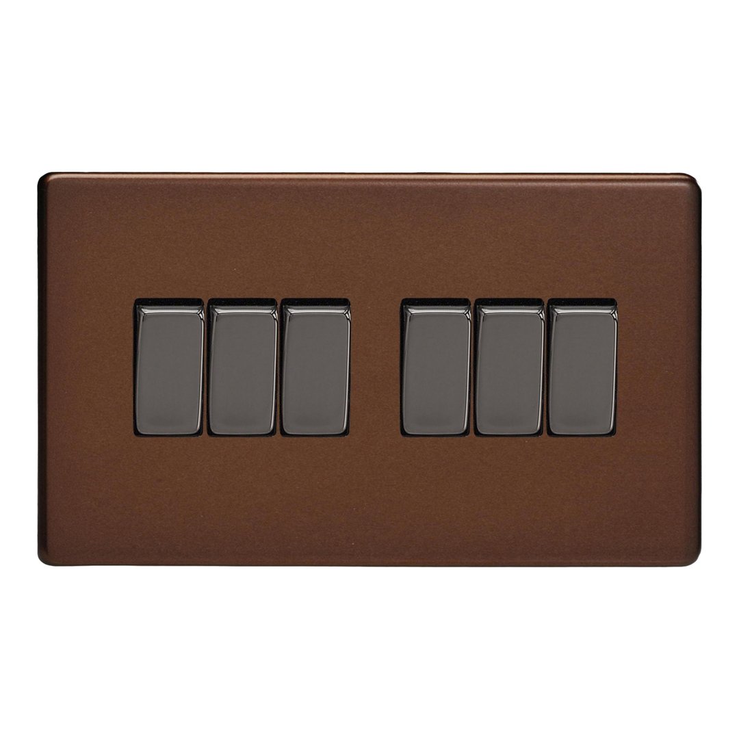 6-Gang 10A 1- or 2-Way Rocker Switch (Twin Plate)