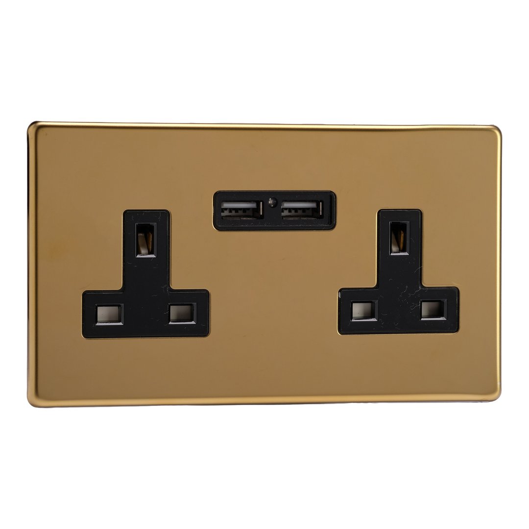 2-Gang 13A Unswitched Socket with 2 x 12W Shared USB A Charging Ports