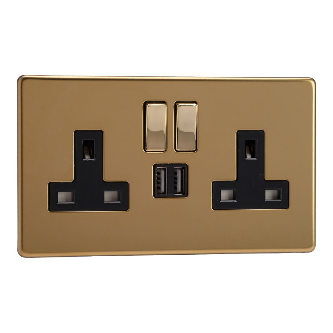 Double Socket with 2 x 12W Shared USB A Charging Ports