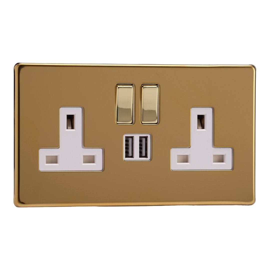 Double Socket with 2 x 12W Shared USB A Charging Ports
