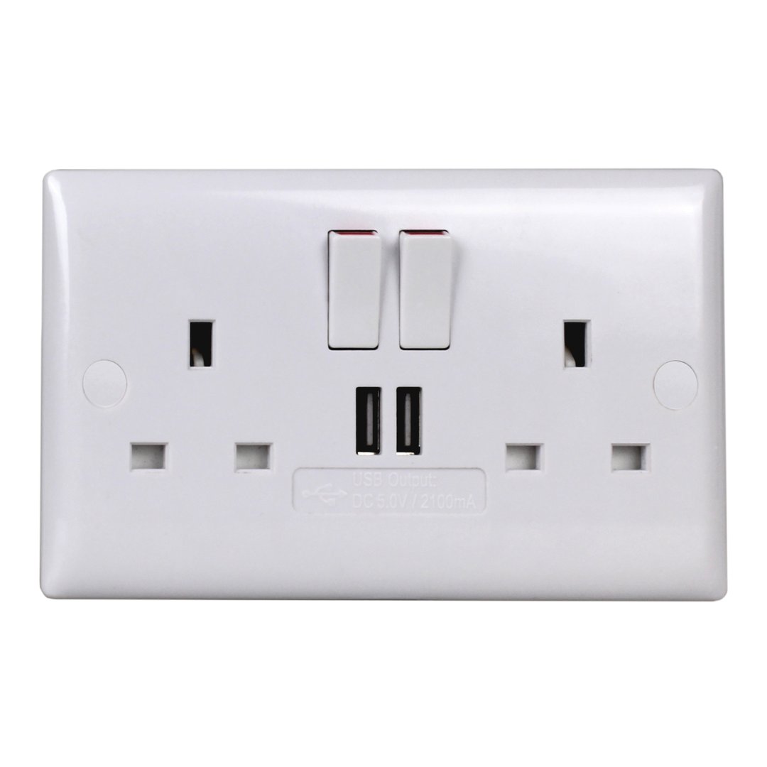 Double Socket with 2 x 12W Shared USB A Charging Ports