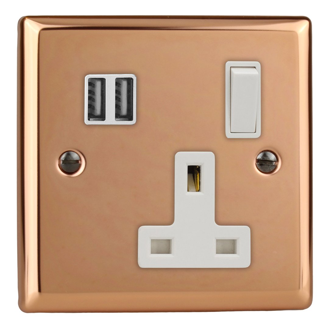 1-Gang 13A Switched Socket with 2 x 17W Shared USB A Charging Ports