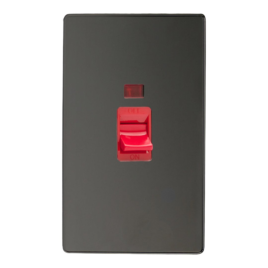 45A Cooker Switch with Neon (Vertical Twin Plate/ Red Rocker)