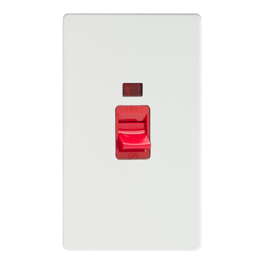 45A Cooker Switch with Neon (Vertical Twin Plate/ Red Rocker)