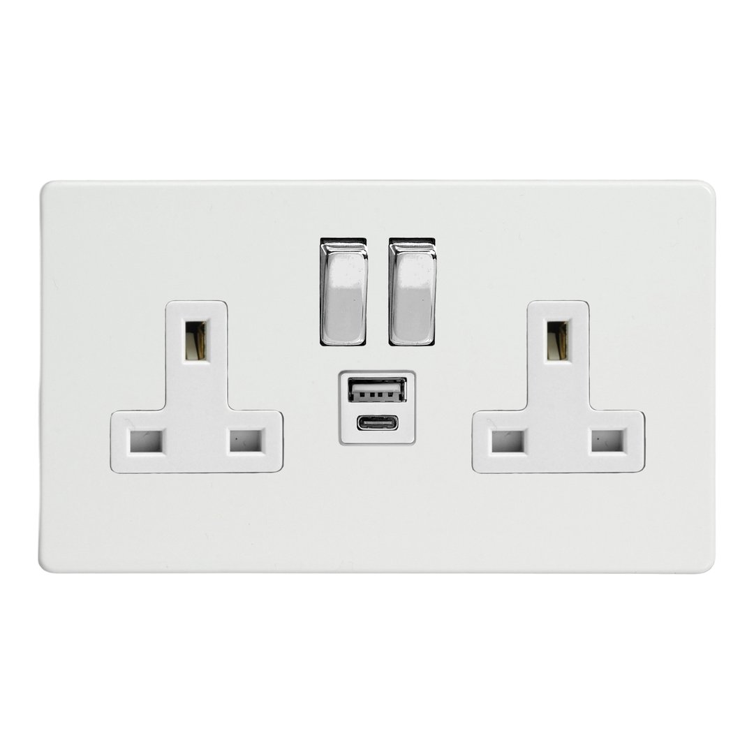 Double Socket with 20W Shared USB A & C Charging Ports