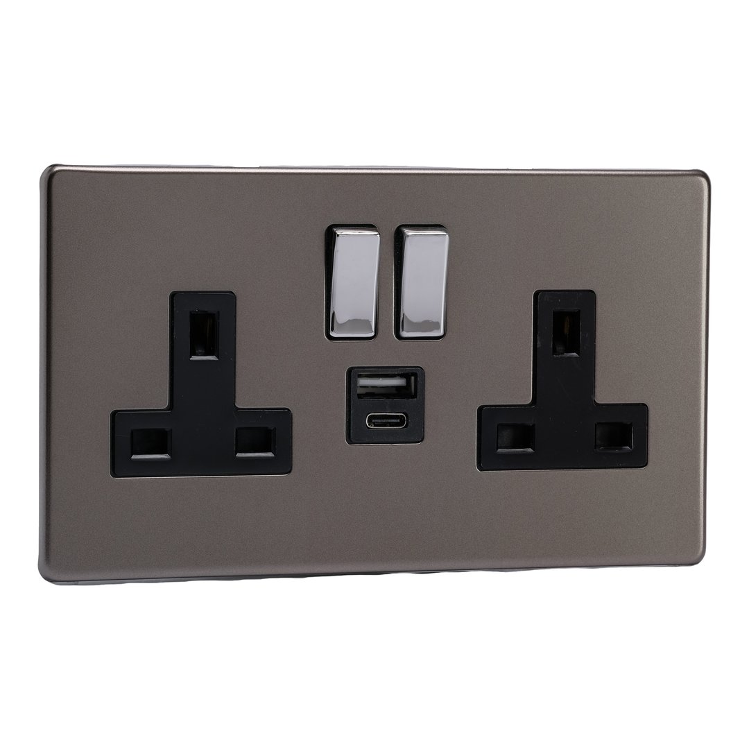 Double Socket with 20W Shared USB A & C Charging Ports