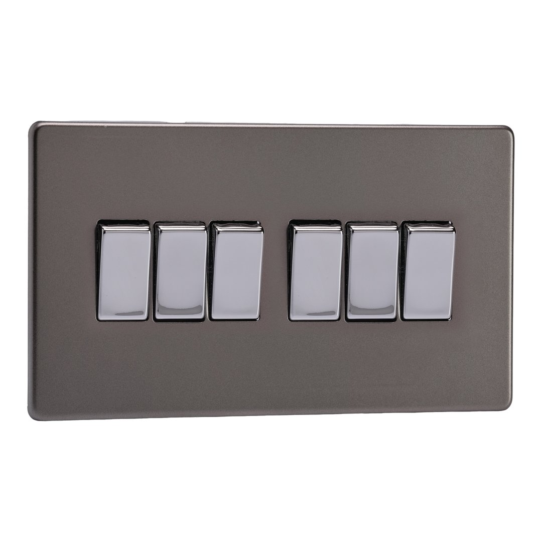 6-Gang 10A 1- or 2-Way Rocker Switch (Twin Plate)