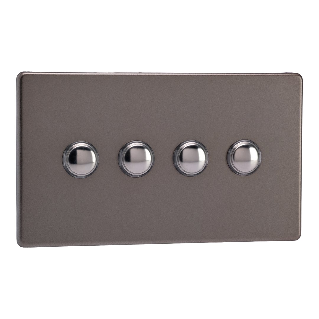 4-Gang 6A 1- or 2-Way Push On/Off Impulse Switch (Twin Plate)