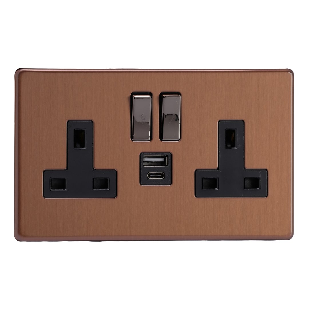 Double Socket with 20W Shared USB A & C Charging Ports